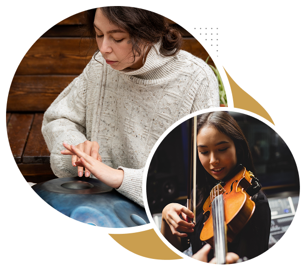 Our Music Program is designed to awaken the purest expression of the soul through sound. Blending Classical Indian Music with global contemporary techniques, the curriculum helps students understand the spiritual power of rhythm, melody, and vibration. Under the guidance of experienced maestros, learners explore vocal mastery, instrumental training, and the science of Nada Yoga discovering how music can heal, transform, and elevate consciousness.